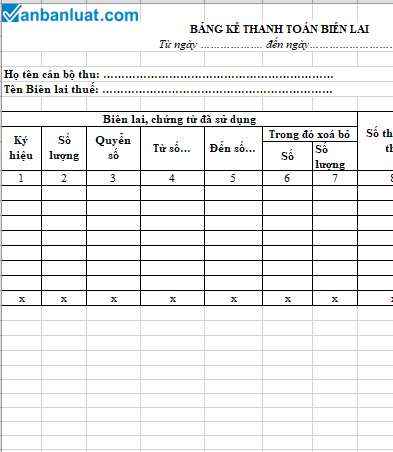 BẢNG KÊ THANH TOÁN BIÊN LAI