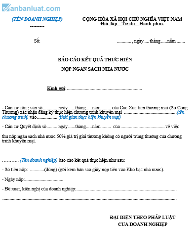 ……….. (Tên doanh nghiệp) báo cáo kết quả thực hiện như sau: