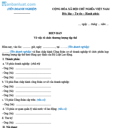 …….. (Tên doanh nghiệp) và Ban chấp hành Công đoàn cơ sở doanh nghiệp tổ chức phiên họp thương lượng tập thể theo đúng quy định của Bộ Luật Lao động.