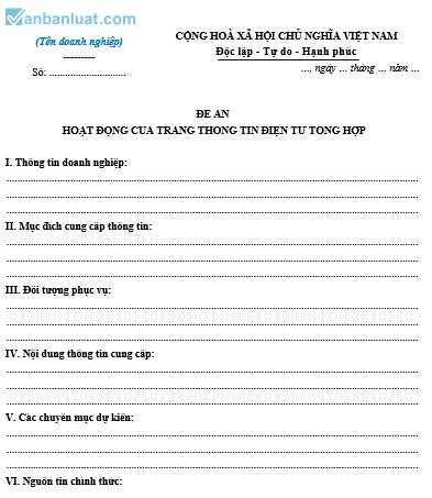 Đề án hoạt động của trang thông tin điện tử tổng hợp trong doanh nghiệp tư nhân