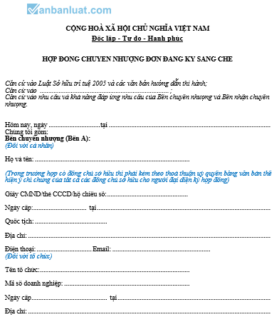 HỢP ĐỒNG CHUYỂN NHƯỢNG ĐƠN ĐĂNG KÝ SÁNG CHẾ