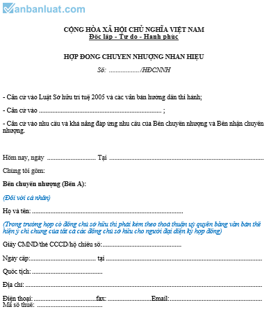HỢP ĐỒNG CHUYỂN NHƯỢNG NHÃN HIỆU