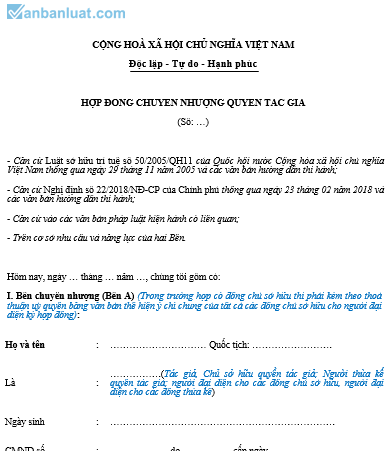 HỢP ĐỒNG CHUYỂN NHƯỢNG QUYỀN TÁC GIẢ