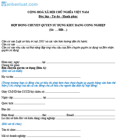 HỢP ĐỒNG CHUYỂN QUYỀN SỬ DỤNG KIỂU DÁNG CÔNG NGHIỆP