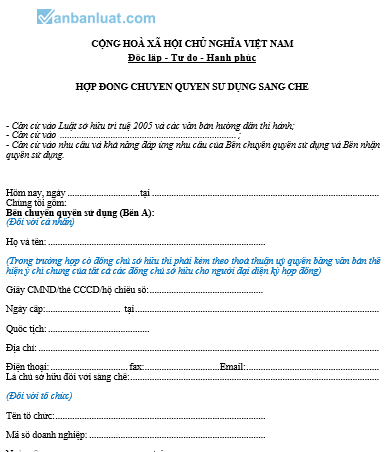 HỢP ĐỒNG CHUYỂN QUYỀN SỬ DỤNG SÁNG CHẾ