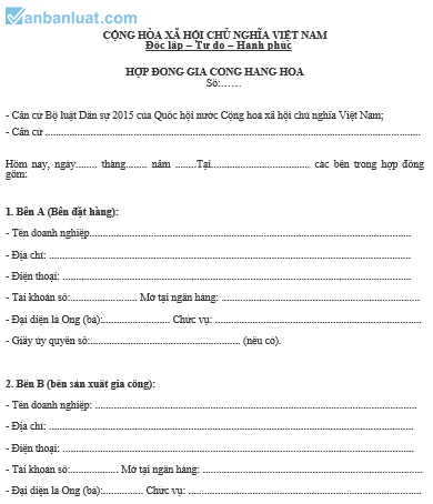 HỢP ĐỒNG GIA CÔNG HÀNG HÓA