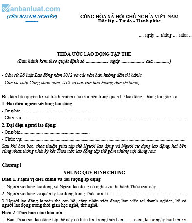 THỎA ƯỚC LAO ĐỘNG TẬP THỂ