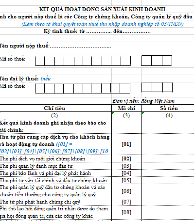 Dành cho người nộp thuế là các Công ty chứng khoán, Công ty quản lý quỹ đầu tư chứng khoán | |||||||