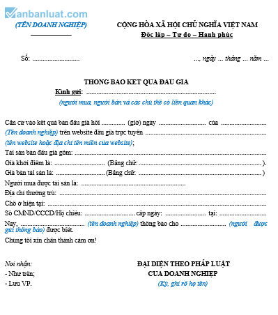 Thông báo kết quả đấu giá trong doanh nghiệp tư nhân