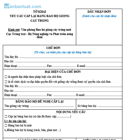 YÊU CẦU CẤP LẠI BẰNG BẢO HỘ GIỐNG CÂY TRỒNG