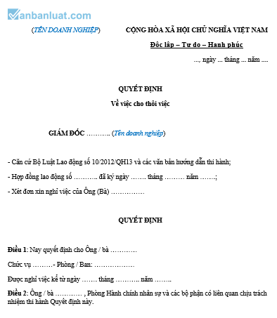 Được nghỉ việc kể từ ngày ……. tháng ……….. năm ……..