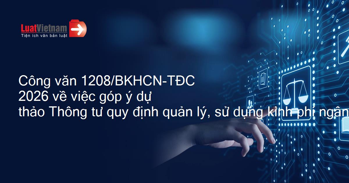 Công văn 1208/BKHCN-TĐC 2026 về việc góp ý dự thảo Thông tư quy định quản lý, sử dụng kinh phí ngân sách Nhà nước lĩnh vực khoa học, công nghệ, đổi mới sáng tạo và chuyển đổi số cho hoạt động chất lượng sản phẩm, hàng hóa