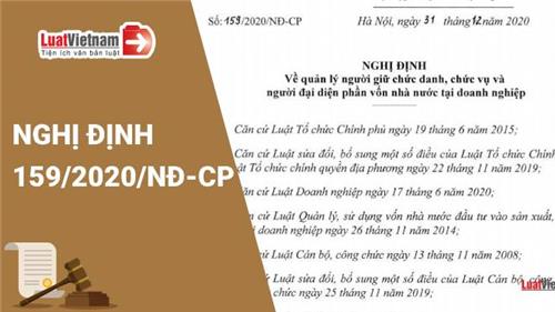 Ngày 31/12/2020, Chính phủ ban hành Nghị định 159/2020/NĐ-CP về quản lý người giữ chức danh, chức vụ và người đại diện phần vốn Nhà nước tại doanh nghiệp.