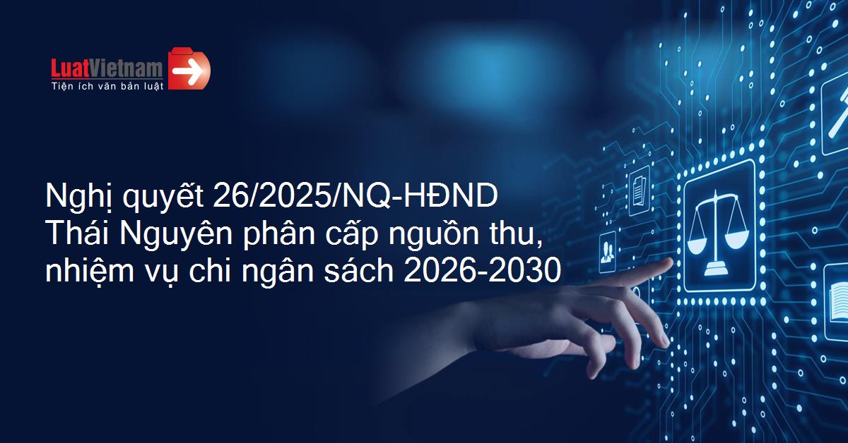 Nghị quyết 26/2025/NQ-HĐND của Hội đồng nhân dân tỉnh Thái Nguyên ban hành quy định về phân cấp nguồn thu, nhiệm vụ chi và tỷ lệ phần trăm (%) phân chia các khoản thu giữa các cấp ngân sách tỉnh Thái Nguyên giai đoạn 2026 - 2030