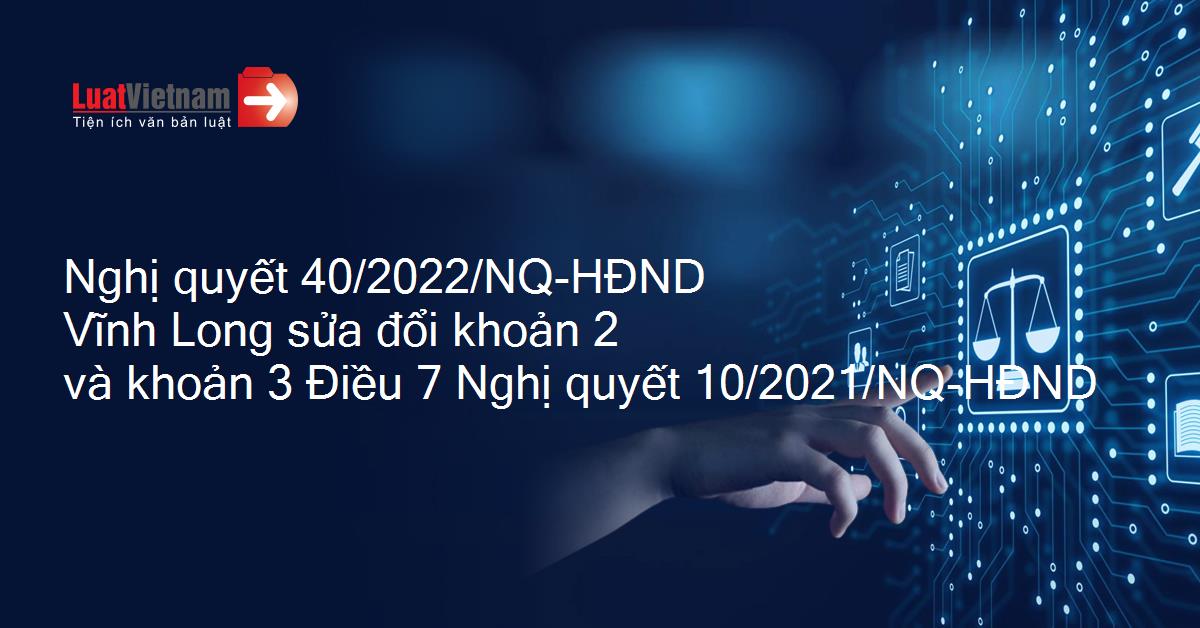 Nghị quyết 40/2022/NQ-HĐND Vĩnh Long sửa đổi khoản 2 và khoản 3 Điều 7 Nghị quyết 10/2021/NQ-HĐND