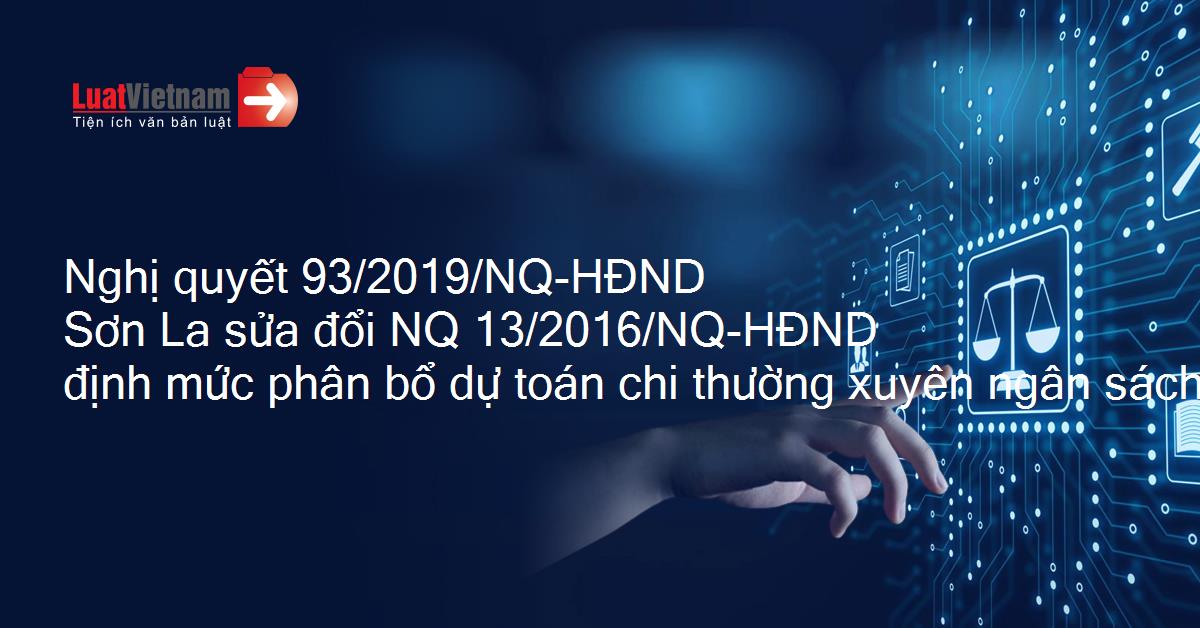 Nghị quyết 93/2019/NQ-HĐND Sơn La sửa đổi NQ 13/2016/NQ-HĐND định mức phân bổ dự toán chi thường xuyên ngân sách địa phương năm 2017