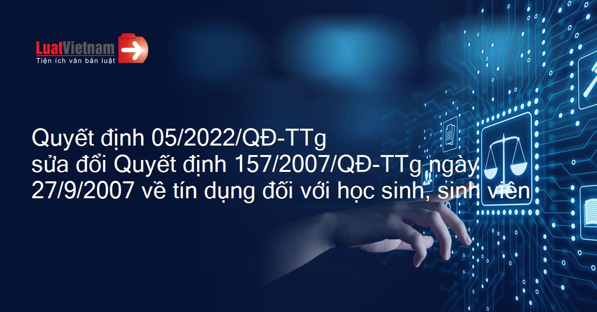 Quyết định 05/2022/QĐ-TTg sửa đổi Quyết định 157/2007/QĐ-TTg ngày 27/9/2007 về tín dụng đối với học sinh, sinh viên