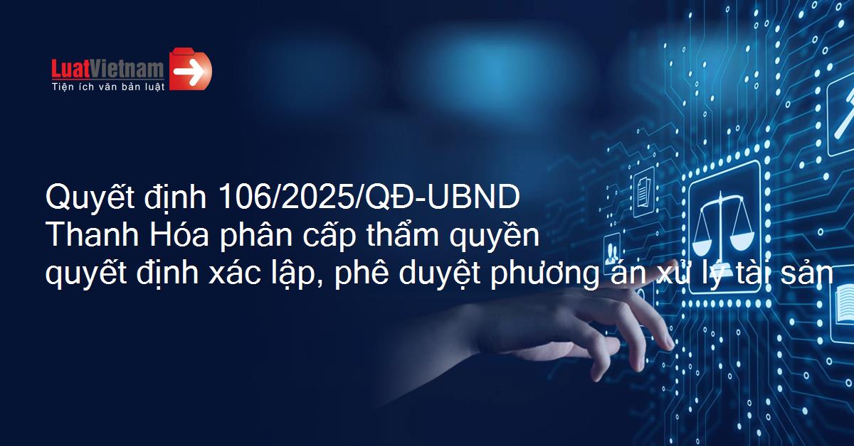 Quyết định 106/2025/QĐ-UBND Thanh Hóa phân cấp thẩm quyền quyết định xác lập, phê duyệt phương án xử lý tài sản