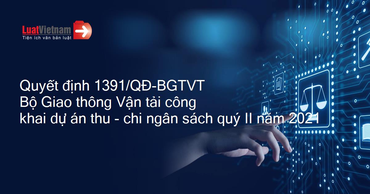 Ngày 26/7/2021, Bộ Giao thông Vận tải ban hành Quyết định 1391/QĐ-BGTVT về việc công khai thực hiện dự án thu - chi ngân sách quý II năm 2021.