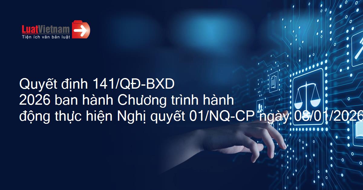 Quyết định 141/QĐ-BXD 2026 ban hành Chương trình hành động thực hiện Nghị quyết 01/NQ-CP ngày 08/01/2026 của Chính phủ về nhiệm vụ, giải pháp chủ yếu thực hiện Kế hoạch phát triển kinh tế - xã hội và dự toán ngân sách Nhà nước năm 2026