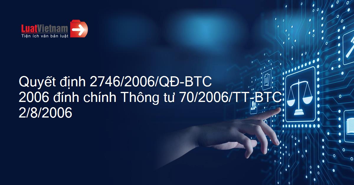 Quyết định 2746/2006/QĐ-BTC 2006 đính chính Thông tư 70/2006/TT-BTC 2/8/2006