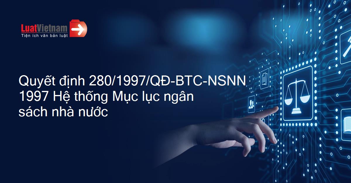 | Số hiệu: | 280/1997/QĐ-BTC-NSNN | Ngày đăng công báo: | Đang cập nhật |