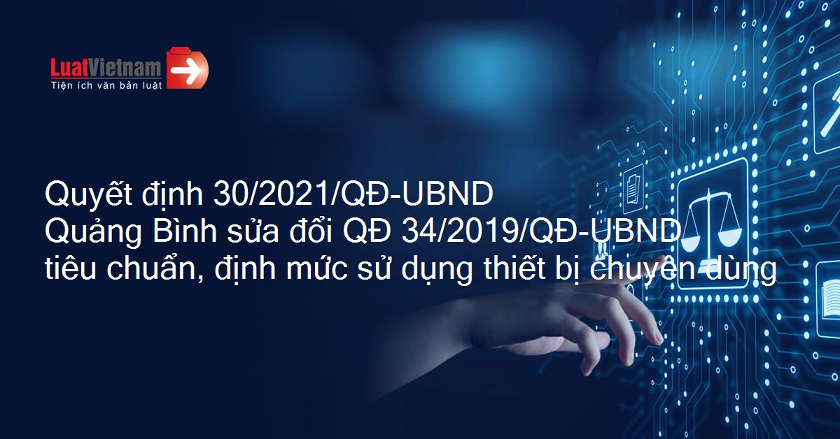 Quyết định 30/2021/QĐ-UBND Quảng Bình sửa đổi QĐ 34/2019/QĐ-UBND tiêu chuẩn, định mức sử dụng thiết bị chuyên dùng