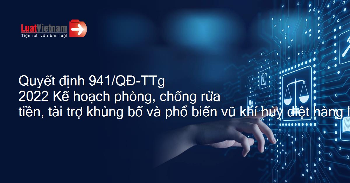 Quyết định 941/QĐ-TTg 2022 Kế hoạch phòng, chống rửa tiền, tài trợ khủng bố và phổ biến vũ khí hủy diệt hàng loạt