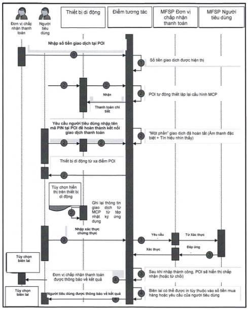 - (Tùy chọn) Nếu đây là giao dịch thương mại điện tử, mã xác thực và việc hoàn tất giao dịch hoàn toàn nằm trong sự kiểm soát của đơn vị chấp nhận thanh toán, không có sự liên lạc nào với POI.