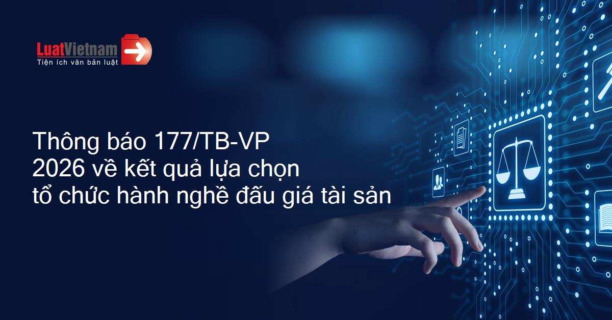 Thông báo 177/TB-VP 2026 về kết quả lựa chọn tổ chức hành nghề đấu giá tài sản