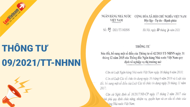 Ngày 07/7/2021, Ngân hàng Nhà nước Việt Nam ban hành Thông tư 09/2021/TT-NHNN về việc sửa đổi, bổ sung một số điều của Thông tư 42/2015/TT-NHNN ngày 31/12/2015 của Thống đốc Ngân hàng Nhà nước Việt Nam quy định về nghiệp vụ thị trường mở.