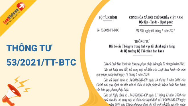 Ngày 06/7/2021, Bộ Tài chính ban hành Thông tư 53/2021/TT-BTC về việc bãi bỏ các Thông tư trong lĩnh vực tài chính ngân hàng do Bộ trưởng Bộ Tài chính ban hành