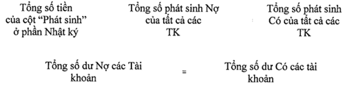 Sau khi ghi đủ các số liệu có liên quan đến các tài khoản, phải thực hiện tổng cộng Bảng cân đối tài khoản, số liệu trong Bảng cân đối tài khoản phải đảm bảo tính cân đối bắt buộc sau đây:
