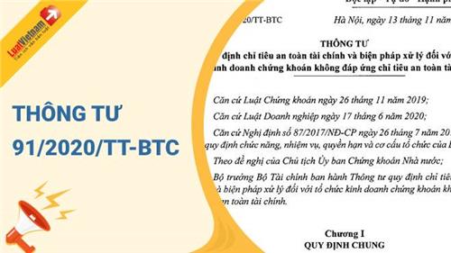 Ngày 13/11/2020, Bộ Tài chính đã ban hành Thông tư 91/2020/TT-BTC quy định chỉ tiêu an toàn tài chính và biện pháp xử lý đối với tổ chức kinh doanh chứng khoán không đáp ứng chỉ tiêu an toàn tài chính.