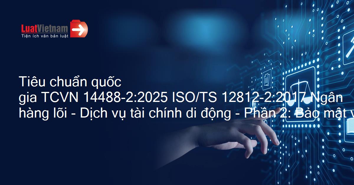 Tiêu chuẩn quốc gia TCVN 14488-2:2025 ISO/TS 12812-2:2017 Ngân hàng lõi - Dịch vụ tài chính di động - Phần 2: Bảo mật và bảo vệ dữ liệu cho các dịch vụ tài chính di động