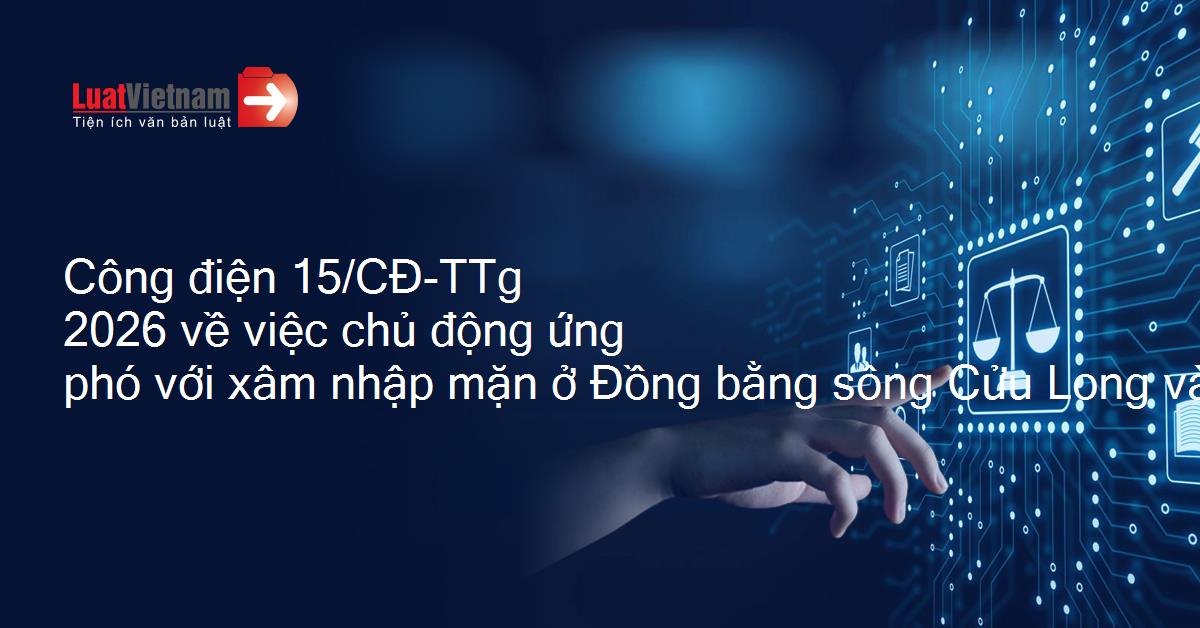 Công điện 15/CĐ-TTg 2026 về việc chủ động ứng phó với xâm nhập mặn ở Đồng bằng sông Cửu Long và hạn hán, cháy rừng ở Nam Trung Bộ và Đông Nam Bộ
