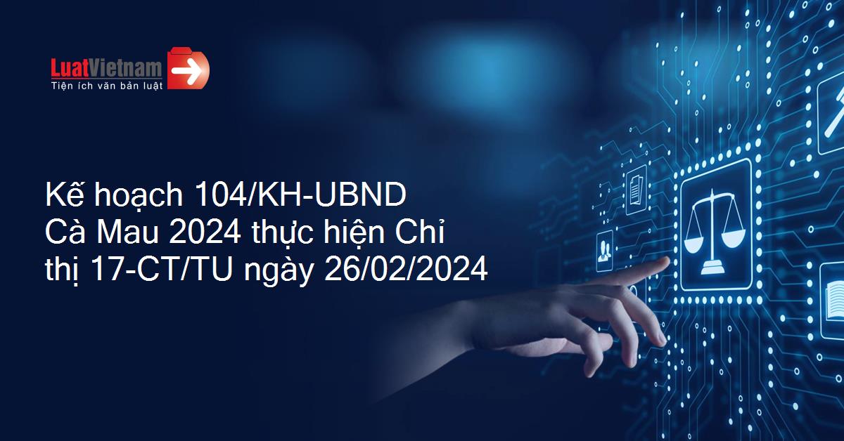 Kế hoạch 104/KH-UBND Cà Mau 2024 thực hiện Chỉ thị 17-CT/TU ngày 26/02/2024