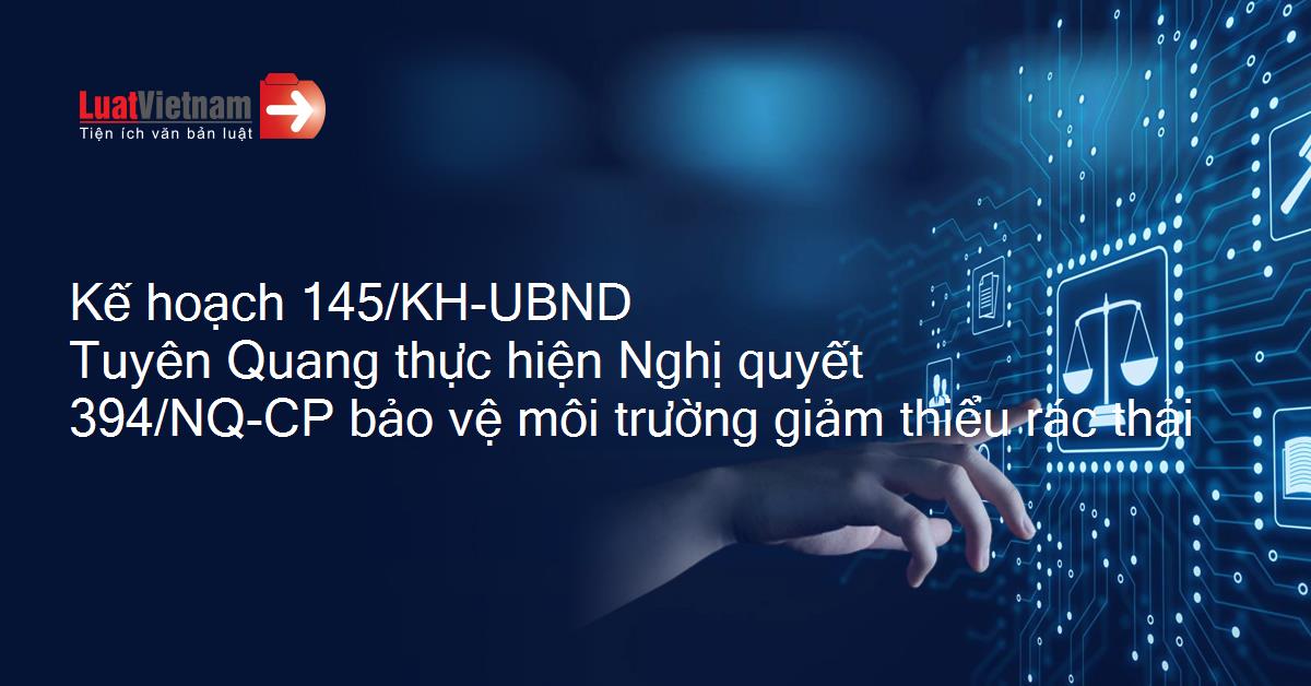 Kế hoạch 145/KH-UBND Tuyên Quang thực hiện Nghị quyết 394/NQ-CP bảo vệ môi trường giảm thiểu rác thải