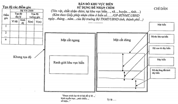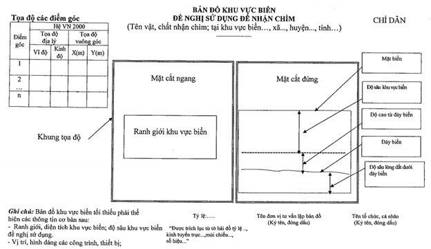 1. Tên, khối lượng, kích thước, thành phần của vật được nhận chìm; tên, loại, khối lượng, thành phần của chất được nhận chìm;