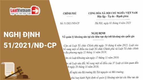 Ngày 01/4/2021, Chính phủ ban hành Nghị định 51/2021/NĐ-CP về quản lý khoáng sản tại các khu vực dữ trự khoáng sản quốc gia.