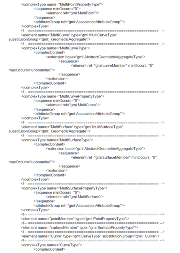 | 10 | GM_Aggregate | gml:MultiGeometryPropertyType | gml:MultiGeometry |