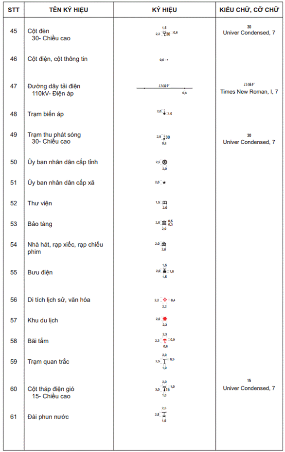 4.5 Ký hiệu không theo tỷ lệ là ký hiệu có dạng hình học tượng trưng cho đối tượng địa lý và kích thước quy ước không theo kích thước thực của đối tượng địa lý.