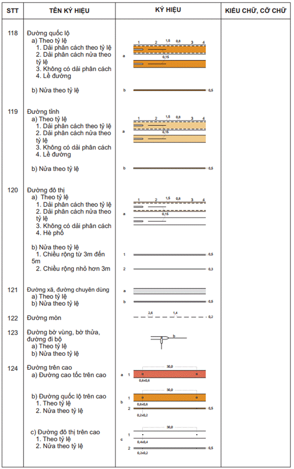 4.4 Ký hiệu nửa theo tỷ lệ là ký hiệu có kích thước một chiều tỷ lệ với kích thước thực của đối tượng địa lý, kích thước chiều còn lại biểu thị quy ước.