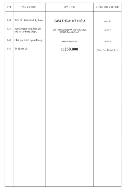 Bảng màu ký hiệu bản đồ địa hình quốc gia tỷ lệ 1:250.000