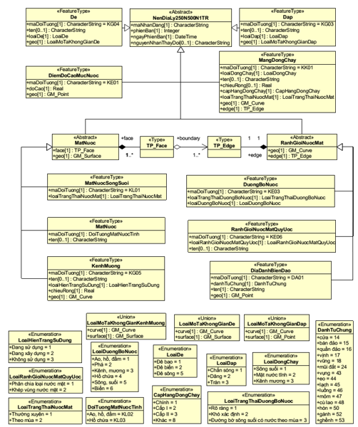 | ThuyVan | Quy định cấu trúc dữ liệu của gói dữ liệu thủy văn bao gồm hệ thống sông, suối, kênh, mương, biển, hồ, ao, đầm, phá, nguồn nước, đường bờ nước và các công trình thủy lợi. |