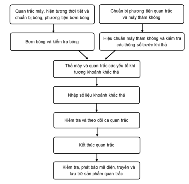 - Khi bóng đã tự nâng lên được và đủ căng, quan trắc viên phải kiểm tra để phát hiện các lỗ thủng, lỗ châm kim làm rò rỉ khí hoặc các khuyết tật của bóng. Trường hợp bị rò rỉ thì xử lý kịp thời để đảm bảo cho kỳ quan trắc đạt kết quả tốt;