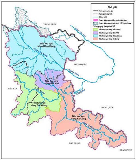 Phần diện tích lưu vực sông Bằng Giang - Kỳ Cùng thuộc lãnh thổ Việt Nam bao gồm 04 tiểu lưu vực sông, cụ thể: tiểu lưu vực sông Bằng Giang; tiểu lưu vực sông Bắc Khê; tiểu lưu vực sông Bắc Giang và tiểu lưu vực sông Kỳ Cùng.