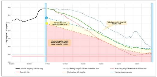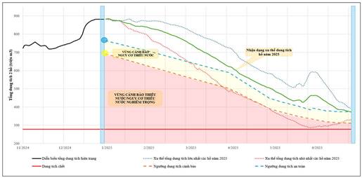 Hình 2. Nhận định xu thế diễn biến tổng dung tích 02 hồ chứa lớn trên lưu vực sông Srêpốk (trường hợp 1)