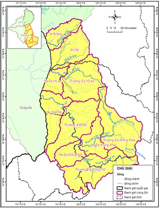 | 5 | Thượng Srêpok | 2627,58 | 01 xã huyện Krông Ana, 01 xã huyện Cư Kuin, 14 xã huyện Cư M'Gar, 05 xã huyện Buôn Đôn, 01 xã huyện Krông Buk, 19 xã TP. Buôn Ma Thuột, 01 xã TX. Buôn Hồ thuộc tỉnh Đắk Lắk; 04 xã huyện Đắk Mil, 03 xã huyện Đắk Song, 07 xã huyện Cư Jút, 03 xã huyện Krông Nô thuộc tỉnh Đắk Nông |