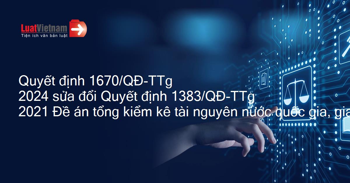 Quyết định 1670/QĐ-TTg 2024 sửa đổi Quyết định 1383/QĐ-TTg 2021 Đề án tổng kiểm kê tài nguyên nước quốc gia, giai đoạn đến năm 2025